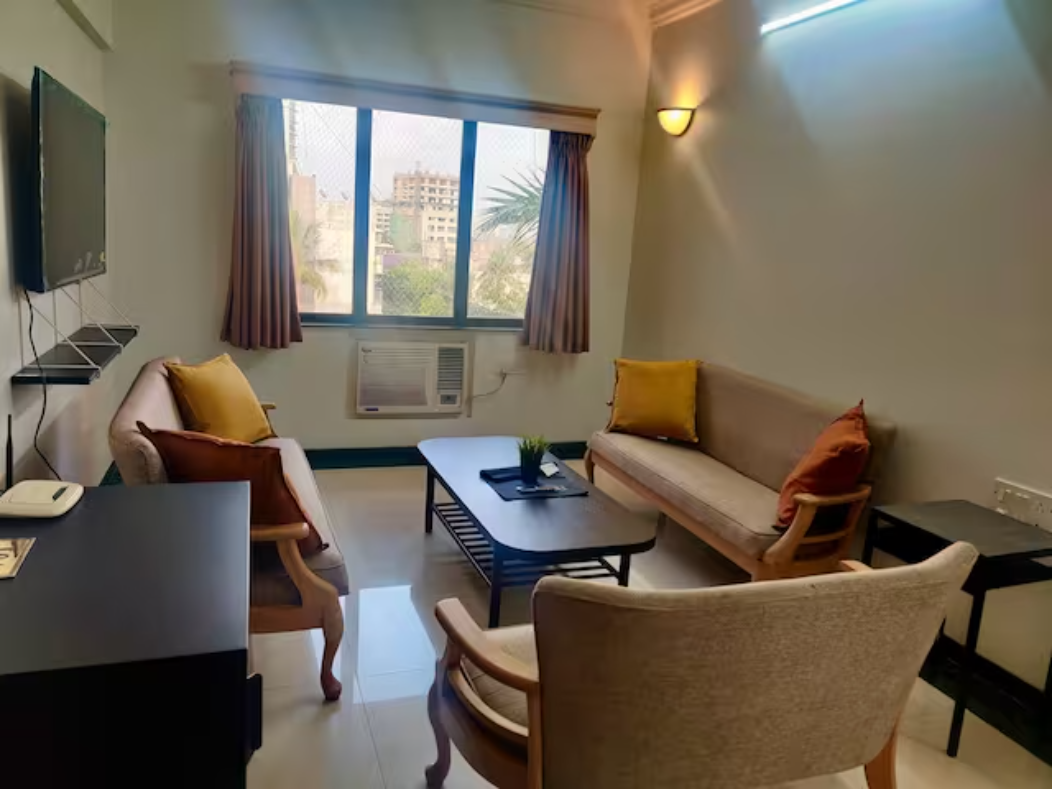 A cozy apartment located at 701, 7th Floor, Pooja Apartment on Chinchpokli Road, off Hill Road in Bandra West, Mumbai 400050. This address is in a vibrant neighborhood with easy access to local amenities and city attractions.